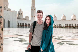 - Gekleed in een abaya de adembenemende Seikh Zayed Moskee bewonderen