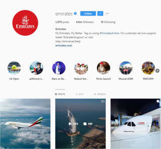 Emirates was de eerste luchtvaartmaatschappij met één miljoen volgers. Naast indrukwekkende foto's van vliegtuigen kan je op dit account terecht voor foto's door het personeel en de fantastische locaties waar Emirates heen vliegt. Ook deelt Emirates leuke winacties in hun story, wie weet win jij wel een reis naar Dubai!