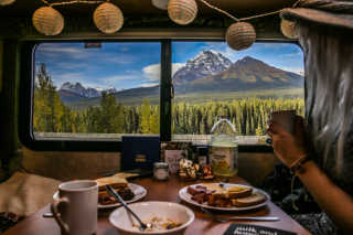 In Calgary haal ik mijn gehuurde camper op. Ik schrik een beetje van het formaat. Wat is het een bakbeest! En wat blijkt? Wanneer je stilstaat maak je 'm zelfs nog een stuk breder door simpelweg op een knop te drukken. Ik kijk m'n ogen uit! De camper is voorzien van alles dat je je maar kunt bedenken en nodig denkt te hebben; verwarming, een fijn ingebouwd bed, een douche en toilet, handdoeken, beddengoed, keukengerei... Net een rijdende hotelkamer!