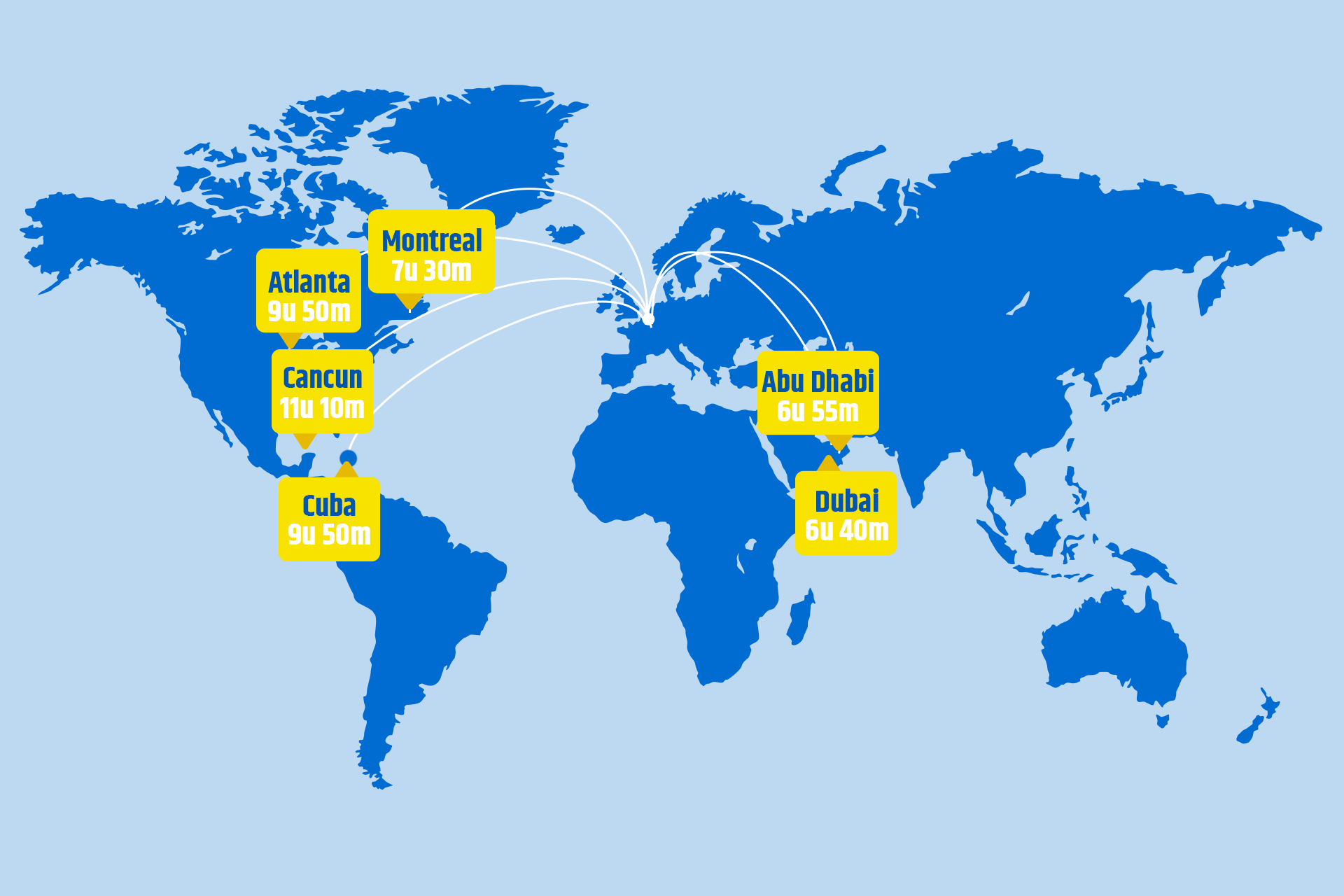 Dit zijn de ‘strakke lijnen’ van Zaventem, een kleine greep van de 198 directe vluchten die vertrekken vanuit Brussel: