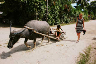 Na een lange en pittige lokale bustocht vanuit Puerto Princesa (klem tusen tussen rijstzakken, hanen, varkens en baby’s) kom ik aan bij ‘the junction’: een soort kruispunt met een typisch Aziatisch stalletje en een paar tricycles die staan te wachten tot ze een rit krijgen richting Port Barton. Deze tocht door de jungle is enorm pittig, maar bij aankomst voel ik direct dat dit de ellende dubbel en dwars waard was. Port Barton bestaat uit een verlaten strand met een paar slaapplekken, gelegen aan een baai vol vissersbootjes met de jungle als achtergrond. De enige weg om hier te komen is door deze jungle. Het kleine dorp zelf bestaat uit hutjes, zandwegen en her en der een rijstveld. Palmbomen domineren het zicht, slangen schieten weg en de jungle probeert het dorp te overwoekeren. Kinderen laten zich vervoeren op een houten schot voortgetrokken door waterbuffels. Er is geen internet, maar als je geluk hebt is er soms stroom.