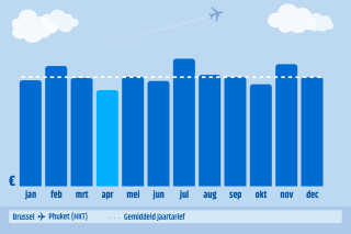 April was vorig jaar de goedkoopste maand van het jaar om je ticket naar Phuket te boeken. Juli en november zijn de duurste maanden van het jaar. Voor de rest van het jaar loopt de prijs tamelijk gelijk. Mensen die in april hun ticket naar Phuket boekten, vertrokken gemiddeld rond eind augustus richting de mooie stranden in Thailand.
