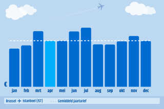 Ook Istanboel is een bestemming die je voordelig kan boeken in april. April is niet de goedkoopste maand van het jaar, maar wel nog voordelig als je bijvoorbeeld in de zomer wil reizen. De duurste maanden om je ticket te boeken zijn de zomermaanden, deze kan je dus beter vermijden. De goedkoopste maand om te boeken is januari.