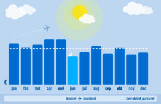 Boek je vliegticket in juni, vertrek in oktober! Als je dat doet ben je het goedkoopste uit. April is de duurste maand om te boeken.
