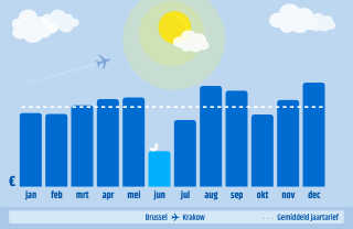 Als je het de Polen vraagt, is Krakow de mooiste stad van Europa. Het stadscentrum staat zelfs op de Werelderfgoedlijst van UNESCO. Als je Krakow zelf wilt bezoeken ben je veruit het goedkoopste in juni. Wel zal je dan nog even moeten wachten voor je het vliegtuig in stapt. De meest gunstige vertrekdatum ligt namelijk in eind september.