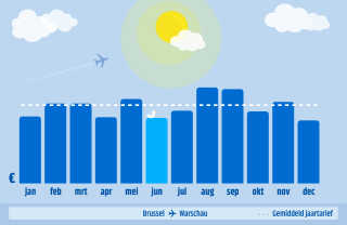 Als je in Juni een vlucht naar Warschau boekt, kies dan voor een vertrekdatum in augustus. Zo bespaar je jezelf het meeste geld.