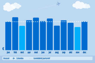 In de prachtige Sri Lankaanse hoofdstad kijk je je ogen uit. Van wolkenkrabbers tot boeddhabeeldjes: je vindt het er allemaal! Als we naar het grafiekje kijken, zien we dat november de állergoedkoopste boekmaand is. Maar moest je niet tot dan kunnen of willen wachten om te boeken - is maart de tweede beste optie. Februari is dan weer de duurste maand.