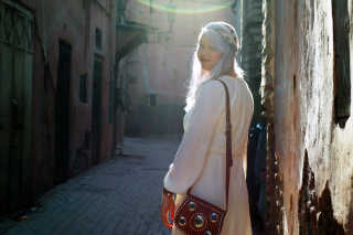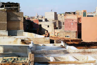 Stof tussen mijn tenen, munt en drie scheppen suiker in mijn hoge thee. De rust van de riad. Een sprookje dat duizend-en-één-nachten mag duren met elke avond een verhaal over prinsen op vliegende tapijten en prinsessen met rinkelende armbanden. Wakker worden in Marrakech en omhoog klimmen naar het dakterras, hoger dan de zon opkomt en haar met open armen ontvangen. In de verte pronken witte bergen; immuun voor deze wervelwind van kleuren, geuren en stemmen.
