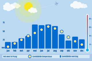 Benieuwd in welke periode je het best weer hebt om te reizen naar Praag? Bekijk onderstaande grafiek of lees verder voor de ideale reis- en boektijd per seizoen.