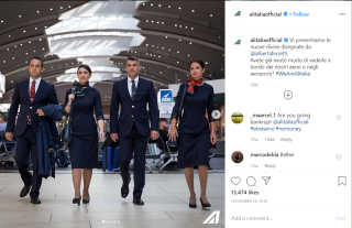 In 2018 riep de luchtvaartmaatschappij Alitalia de Italiaanse modeontwerper Alberta Feretti op om een nieuwe strakke look te creëren. De nieuwe garderobe bestaat uit drie stuks voor de vrouwelijke bemanning - een kleedje, een broek en een trui plus een schort voor diensten aan boord. Voor de mannen is dit een getailleerde jas en broek met een fris wit overhemd, stropdas en aktetas. Dit wordt aangevuld met een regenbestendige trenchcoat.