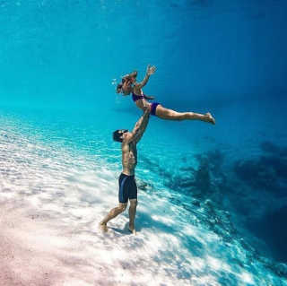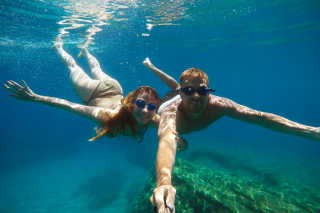 Het heldere water op vakantie leent zich perfect voor prachtige onderwaterplaatjes. Heb je een waterdichte case voor je camera of gsm? Maak dit toffe plaatje met je partner of je reisbestie.