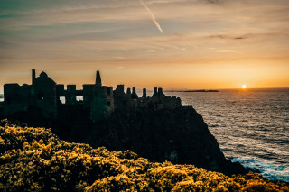 In de verte zie ik de Carrick-A-Rede rope bridge liggen. Deze touwbrug verbindt twee hoge rotsen met elkaar en werd vroeger gebruikt door vissers. Met mijn hoogtevrees loop ik snel heen en weer. Ik visualiseer de Game of Thrones scènes die op deze adembenemende plek opgenomen zijn en plof neer in het gras bij Dunluce Castle waar ik word getrakeerd op een fantastische zonsondergang.