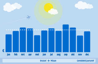 Je hebt drie opties om lekker voordelig in Milaan te geraken. Kies voor een boekmaand in januari, mei of november. Dit zijn gemiddeld de goedkoopste vertrekmaanden om een weekendje te gaan shoppen in Milaan. Boeken doe je ongeveer twee maanden voor vertrek, hoe eerder hoe beter. Wil je in augustus weg, dan boek je in mei!