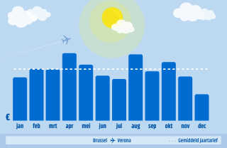 December is misschien al een dure maand, maar niet als het om vliegtickets naar Verona gaat. Boek je namelijk in december een vliegticket naar Verona, dan ben je gemiddeld het goedkoopste uit. Kies dan wel voor een vertrekdatum ergens eind mei. Vroegboeken dus!