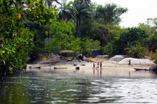 Dit is een waanzinnig mooie tocht over de rivier. Op het dak van een houten bootje proosten we op het goede leven, zien de meest bijzondere vogels in de mangrove, zwaaien we vrolijk naar de locals die voorbij drijven in uitgeholde boomstammen en eindigen we bij een boomhutcafé van een aangespoelde Duitser. Deze beste meneer vertrok vanaf Duitsland naar Engeland, raakte verdwaald en kwam aan op dit plekje in Gambia. Hier bouwde hij zijn meesterwerk, direct aan de rivier. Wat een leven, doe mij er ook zo één! We genieten er van een heerlijk Afrikaans buffet en dansen tot in de late uurtjes op trommelmuziek, enigszins beneveld door het glaasje vuurwater dat we voorgeschoteld krijgen.