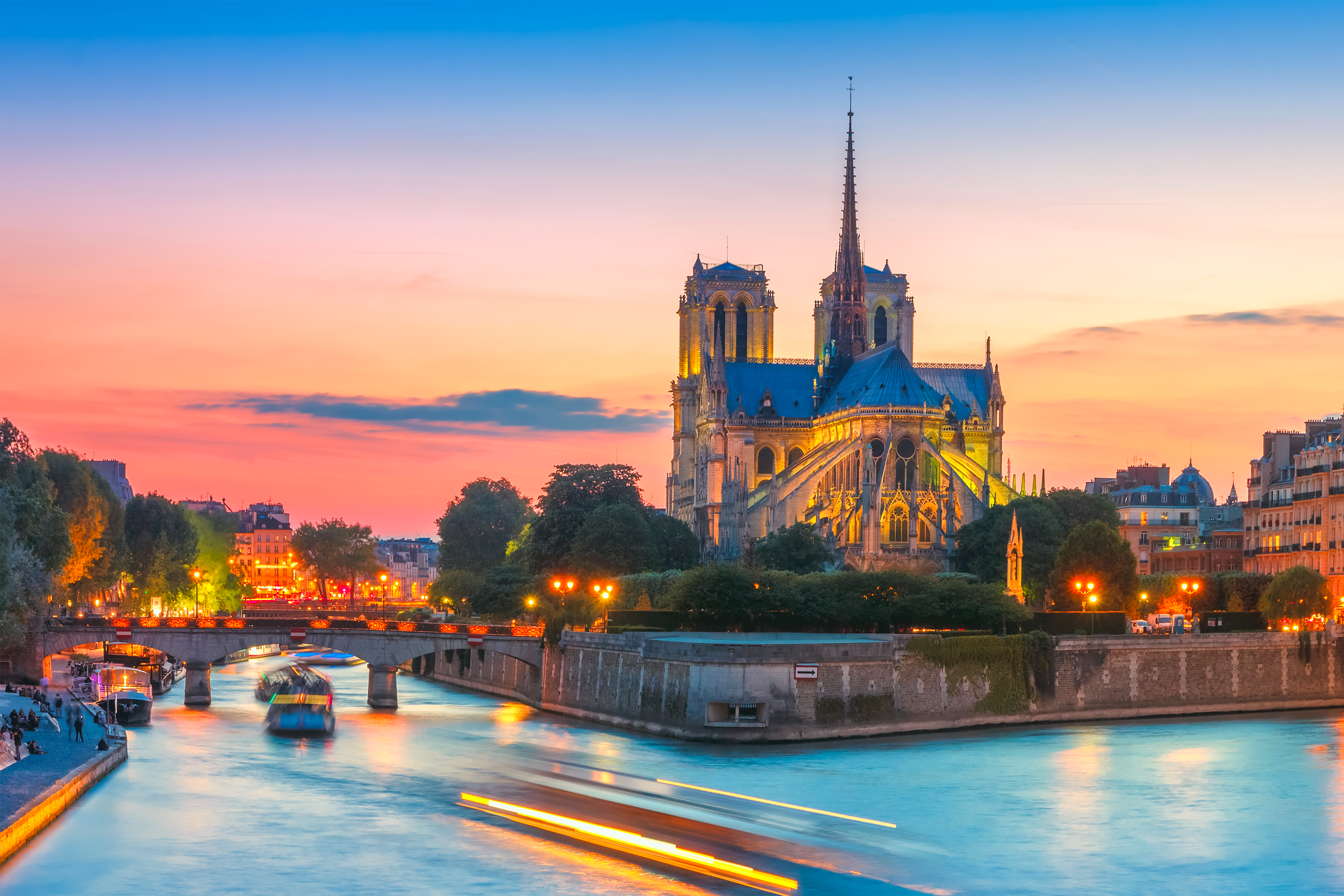 Vervolgens loop je langs de rivier de Seine stroomopwaarts richting Île de la Cité waarop het historische bouwwerk de Notre Dame te bewonderen is, een bouwwerk dat je niet mag missen tijdens je 24 uur in Parijs. De Notre Dame is momenteel door een grote brand tijdelijk dicht voor bezoek, maar de buitenkant van de kathedraal is sowieso al het bekijken waard. Maak hierna een korte stop bij Marie Thé of de plaatselijke Starbucks voor een kop thee, koffie of iets fris met wat lekkers.