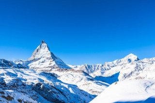 Op de grens van Italië en Zwitserland staat één van de bekendste bergen van de Alpen, de Matterhorn. Deze spitse berg heeft een (soort van de) vorm van een piramide en de bergwanden zijn extreem steil. In de zomer is de bergtop al indrukwekkend, maar in de winter is alles volledig ondergesneeuwd en kijk je helemaal je ogen uit.