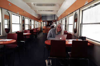 Het blijkt een prima treinrit van zo’n 5,5 uur die me dwars door de inmiddels wit besneeuwde binnenlanden van Polen leidt. Eerlijk gezegd had ik niet veel van de treinen zelf verwacht. Bij het land Polen denk ik toch al snel aan oude treinen met weinig voorzieningen. Uiteindelijk bleek niets van dit waar! Ons treinstelsel kan hier nog wat van leren. De treinen zijn lang en breed en hebben enorme ramen waardoor je onwijs kunt wegdromen bij het uitzicht en ook is er een café inclusief stoelen en tafels en een nóg weidser uitzicht (en bier en een prima menukaart). Ook heeft elke stoel stroomvoorziening, is er goed en snel internet in de trein en je hebt privé cabines. Oh, én ze rijden ook nog eens prima op tijd. Je begrijpt dat ik dolenthousiast ben!
