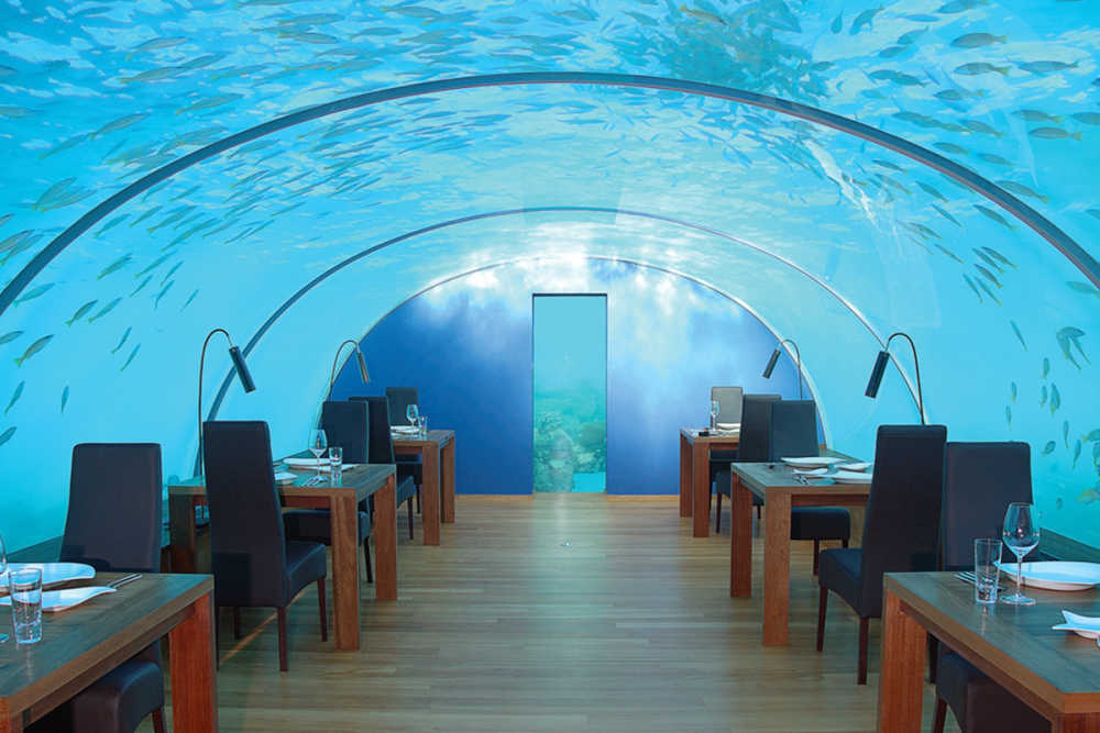 Als je denkt aan een restaurant met uitzicht dan denk je in eerste instantie waarschijnlijk aan een uitzicht op een prachtig landschap? Maar wat dacht je van een uitzicht op de onderwaterwereld met tal van vissen en zelfs haaien? Ithaa Undersea Restaurant op de Malediven biedt precies dat.